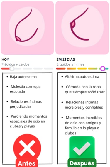 Diseñado especialmente para mujeres cansadas de ver su busto caído y flácido, que ya no quieren seguir esperando a que “algo cambie solo”.